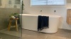 The shower recess is complete with Dolce chrome round combination shower rail, nib wall, linear shower grate and a custom frameless glass shower screen.