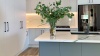 This showstopping kitchen features engineered stone bench-tops and splash-back in the Bianco Molasa from Smartstone’s Milan collection that boasts exquisite bold veins that capture the eye from every angle and is highlighted by LED under-cabinet lighting.
